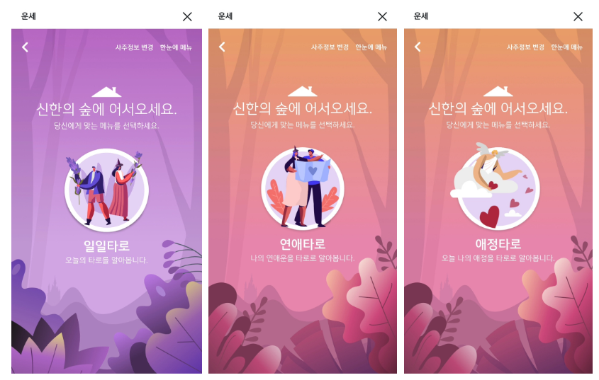 ① 신한SOL 어플 실행 후 [운세] 클릭 혹은 메뉴 검색 창에 [운세] 검색
